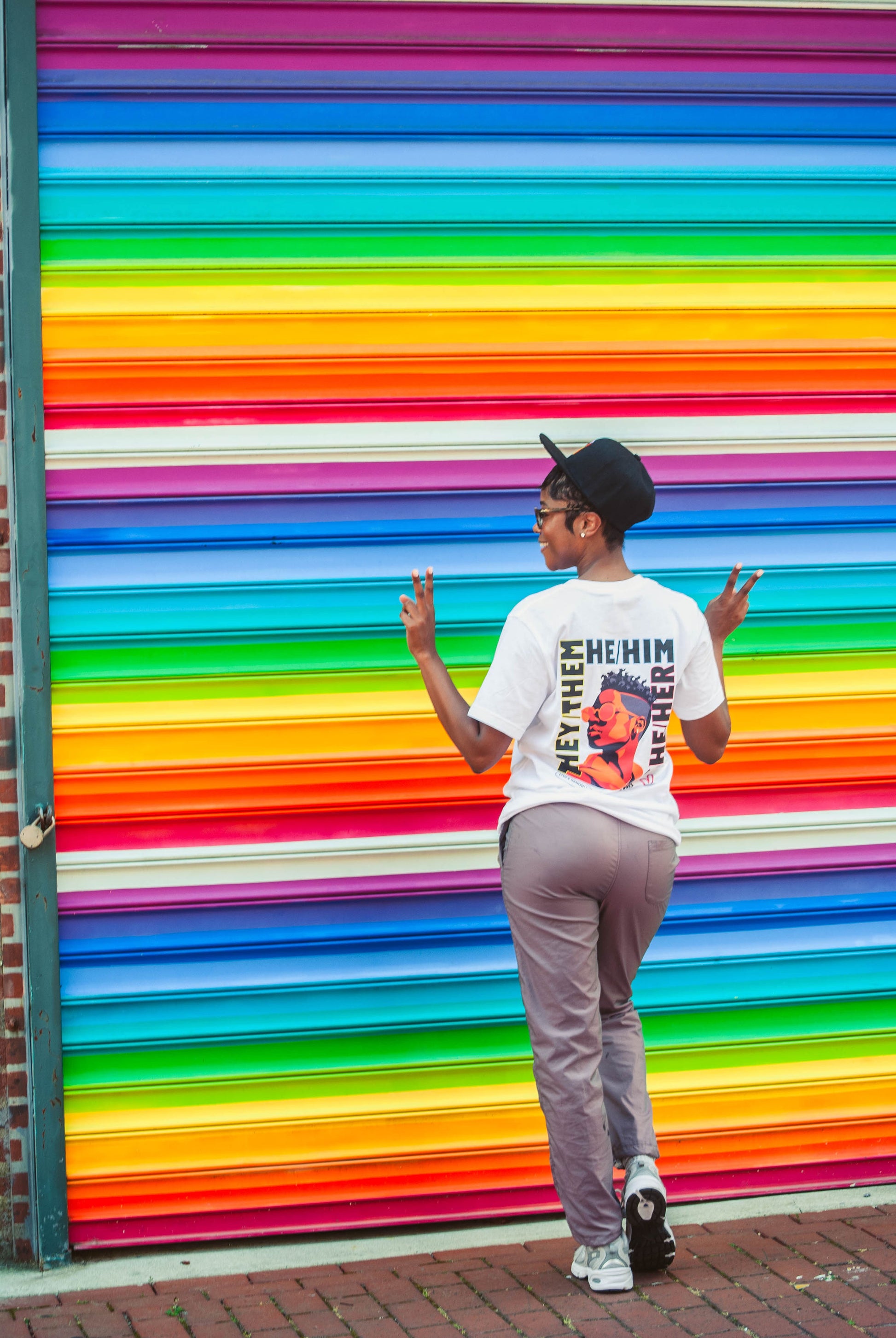 Introducing the new and revised design of the Pronoun Tee from our 2024 Pride Collection. Building upon the success of our 2023 edition, this vibrant t-shirt features a radiant emblem on the front and back, showcasing the pronouns she/her, they/them, and he/him, making it a powerful statement of support for the LGBTQIA+ community.
