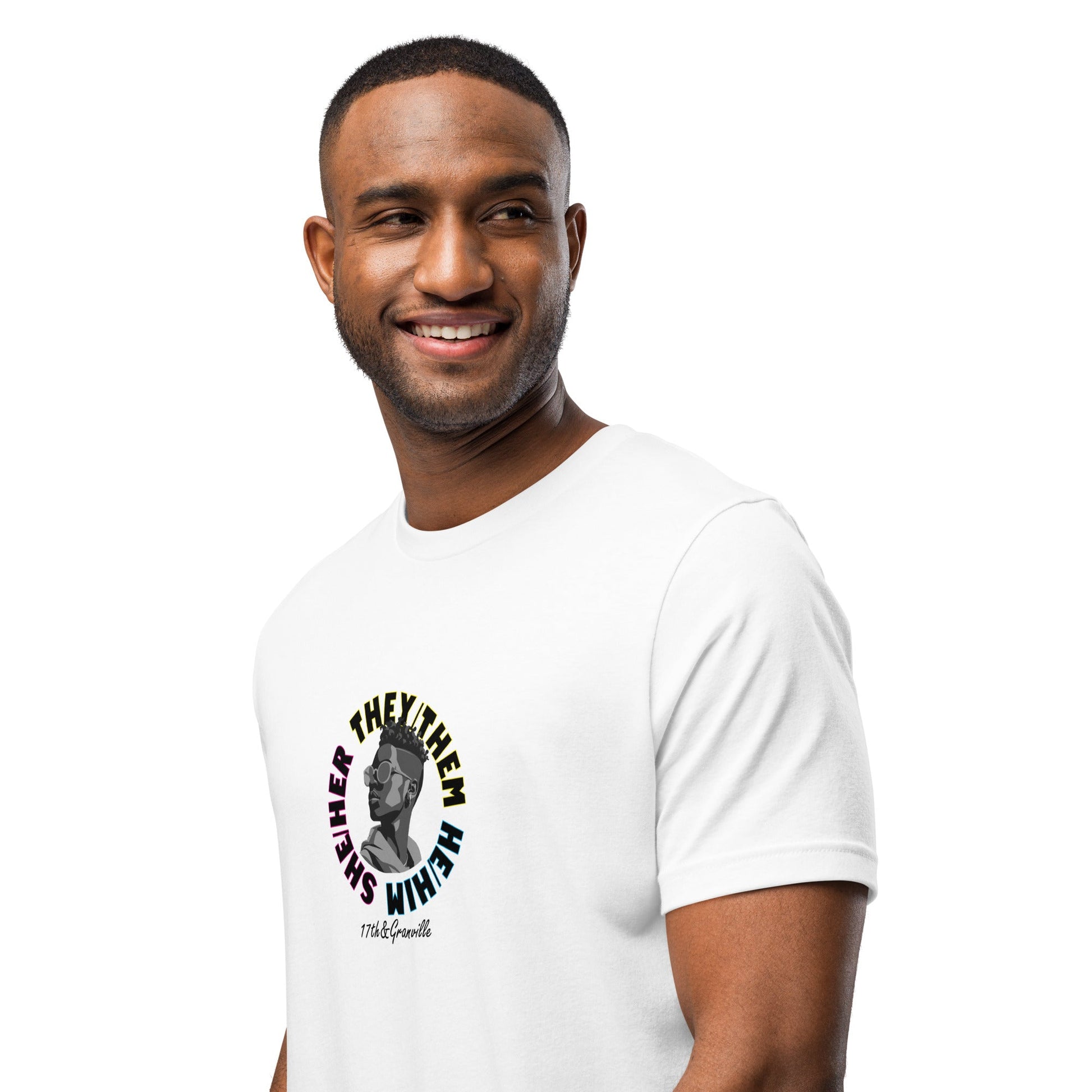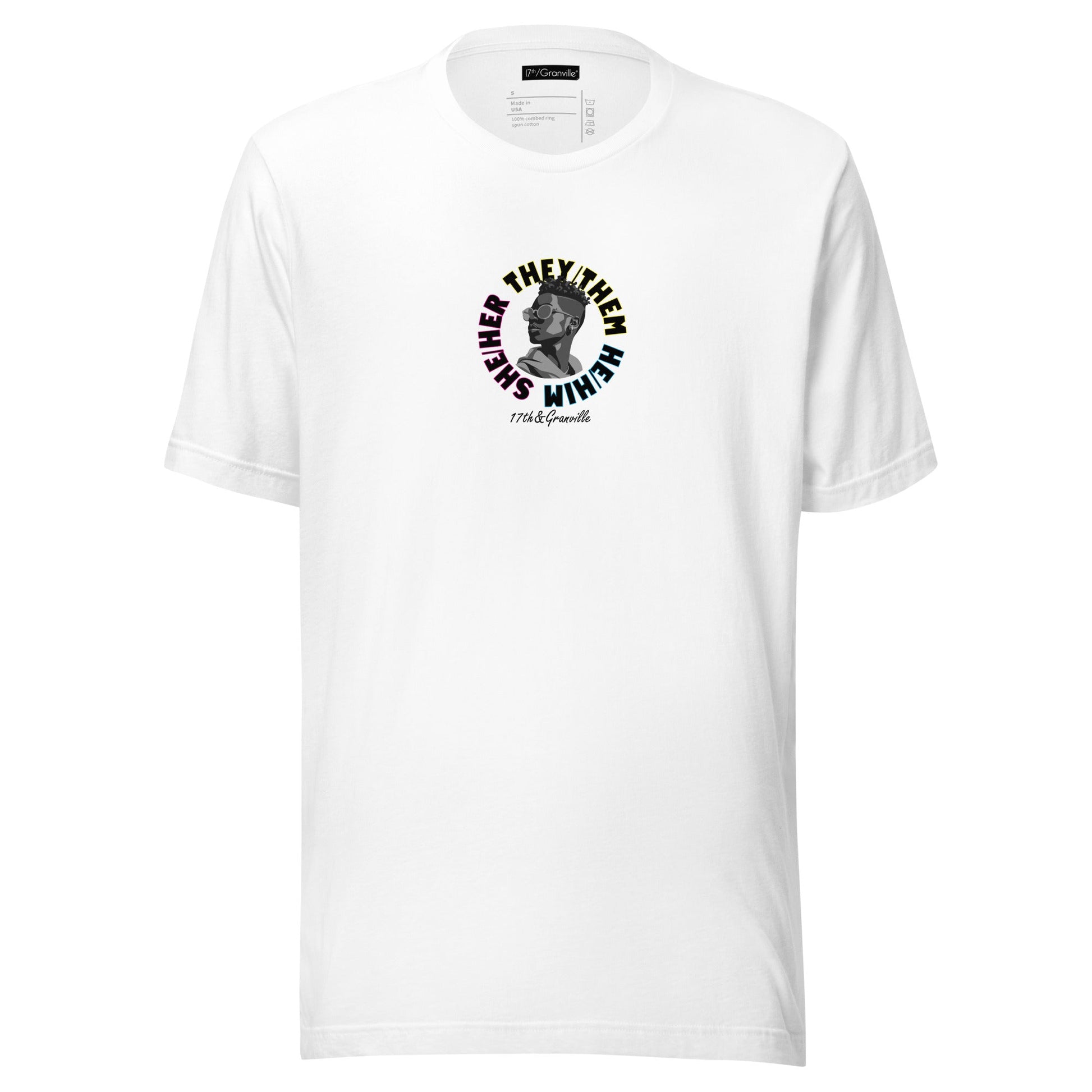 Crafted with high-quality American-made 100% Airlume combed and ring-spun cotton, this pronoun shirt offers a comfortable and stylish unisex fit, perfect for expressing individual identity.