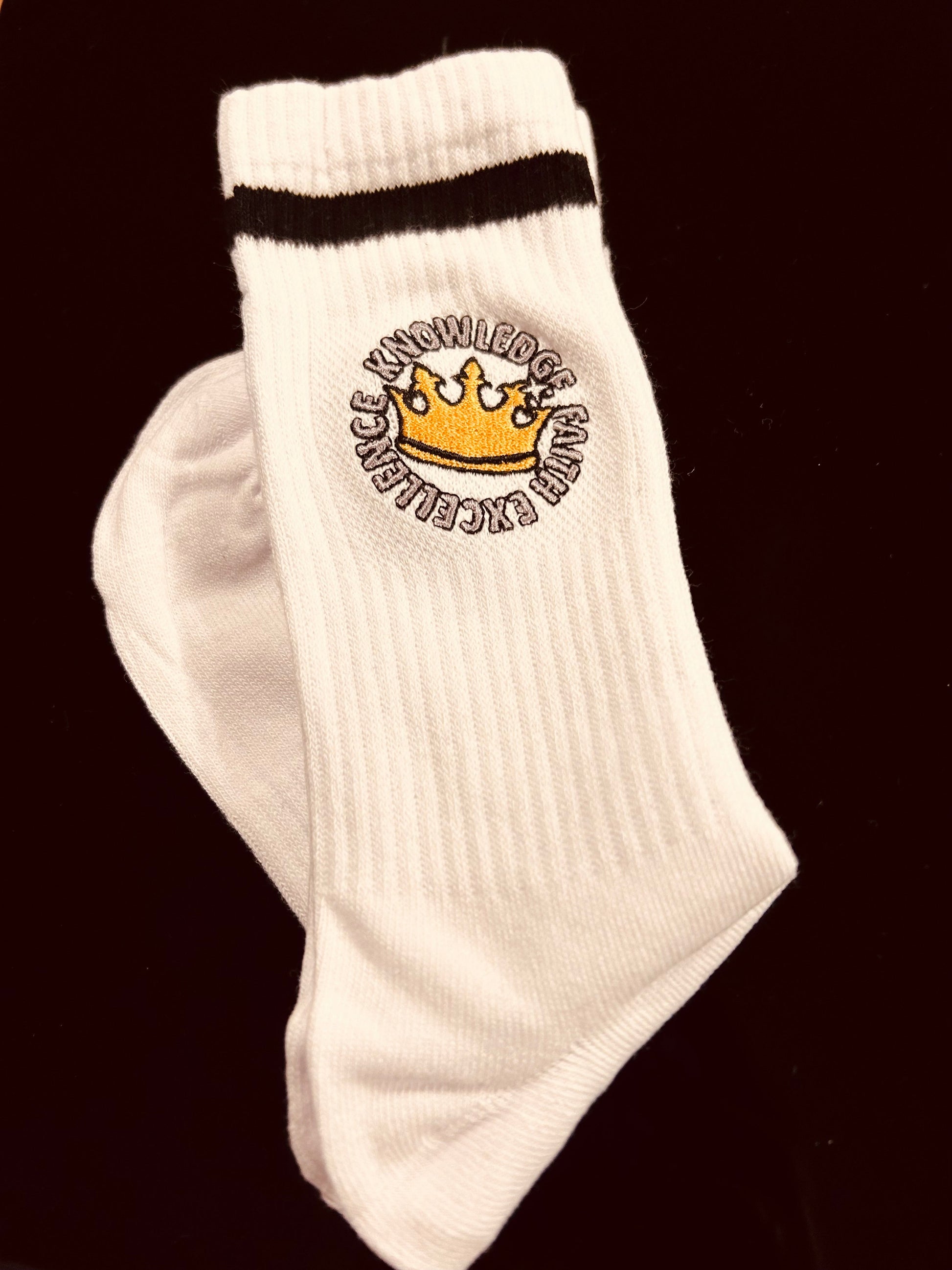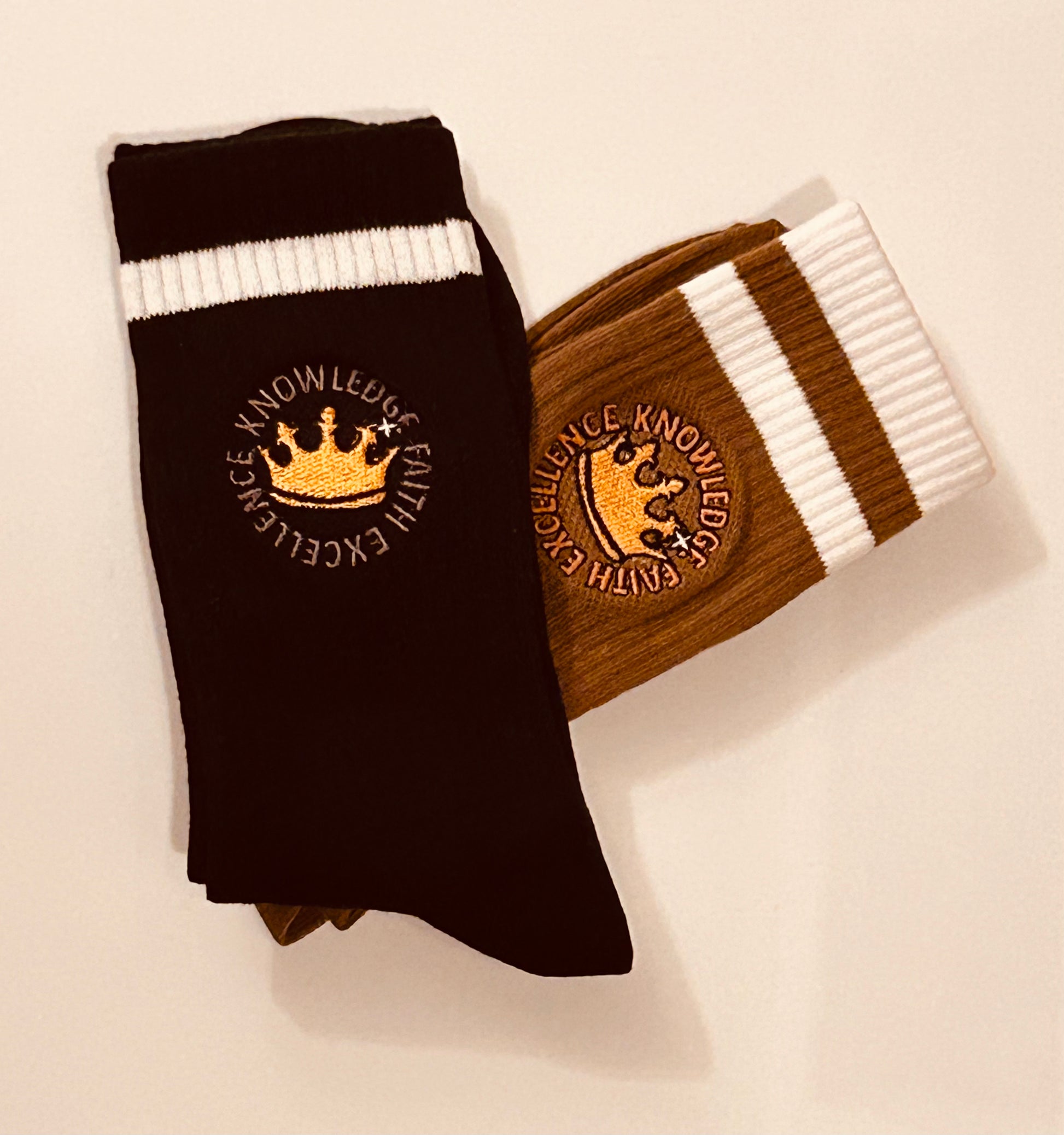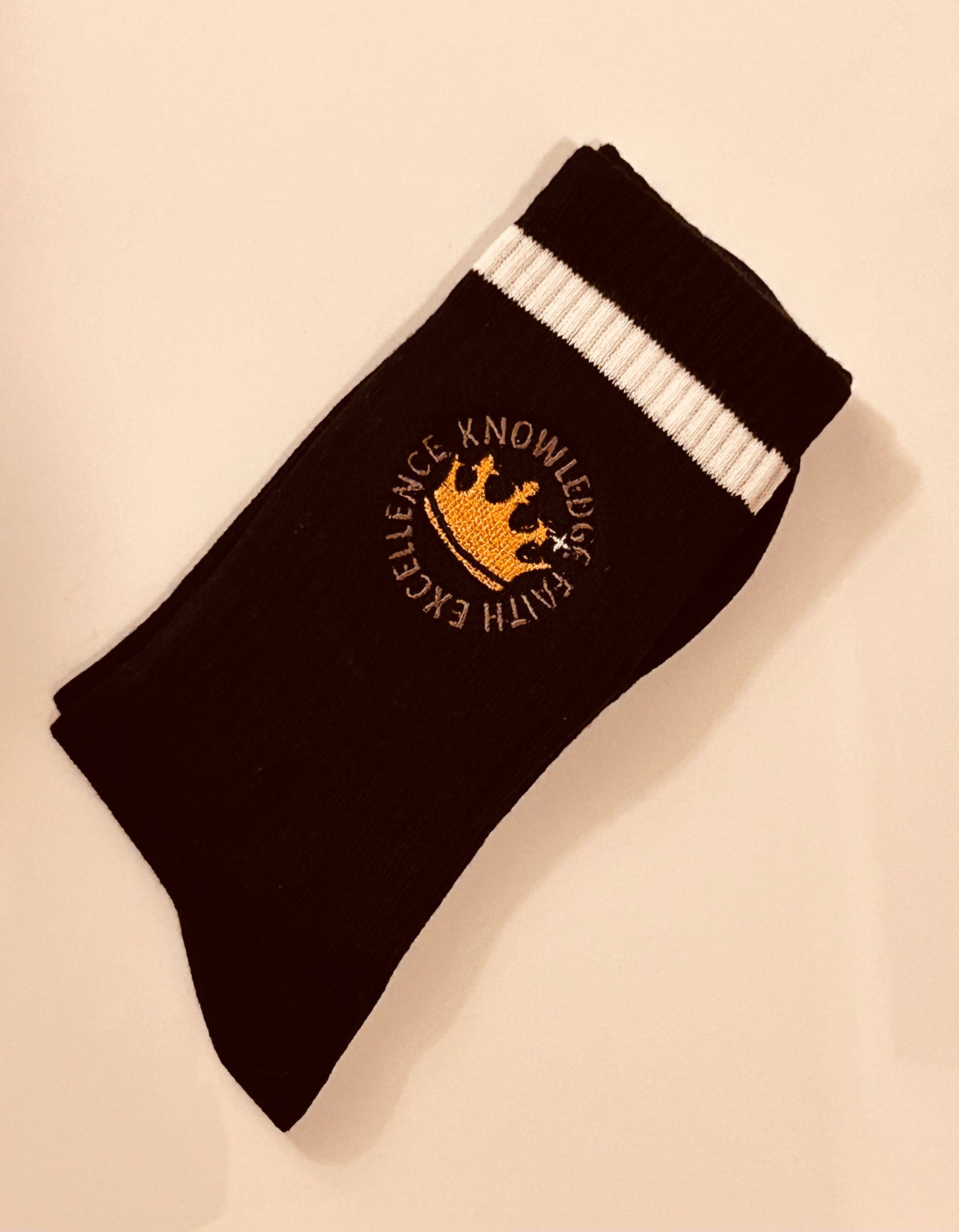 Elevate your style with the Black Excellence Socks, the perfect accessory to complement our Black Excellence Varsity Jacket. Designed to promote Faith, Knowledge, and Excellence, these crew socks embody the essence of our brand.