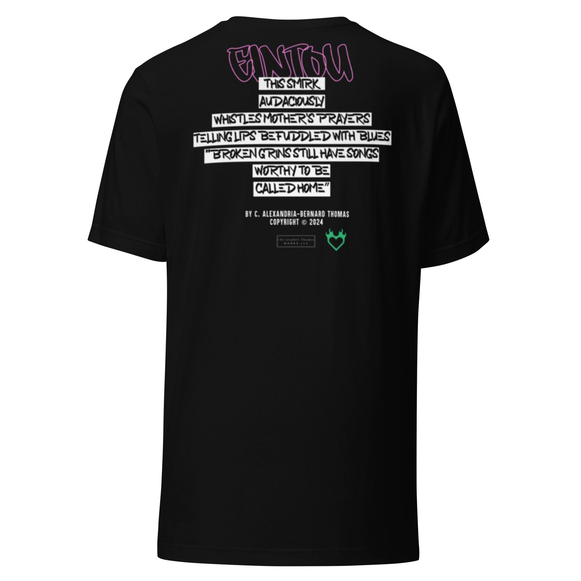 Featuring an excerpt of C. Alexandria-Bernard Thomas Eintou, screen printed on the front and full poem screen printed on the back.