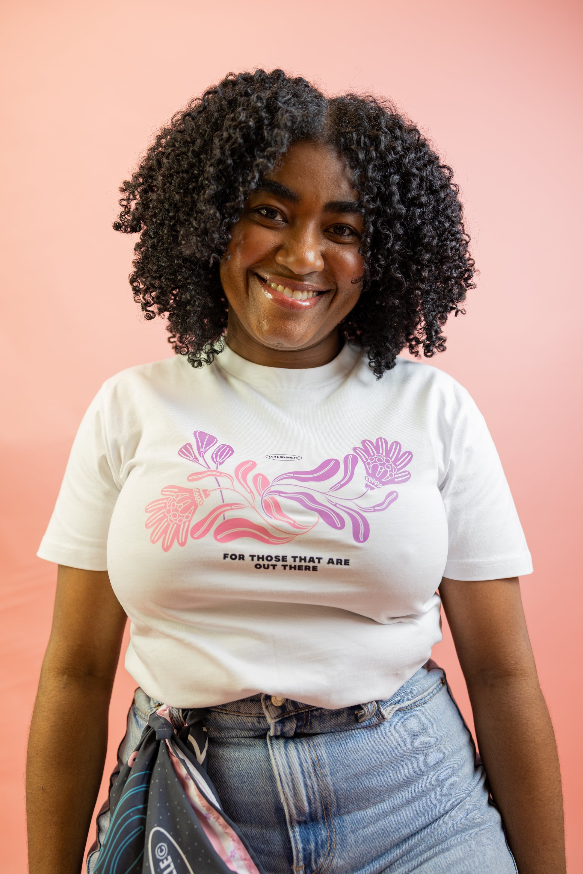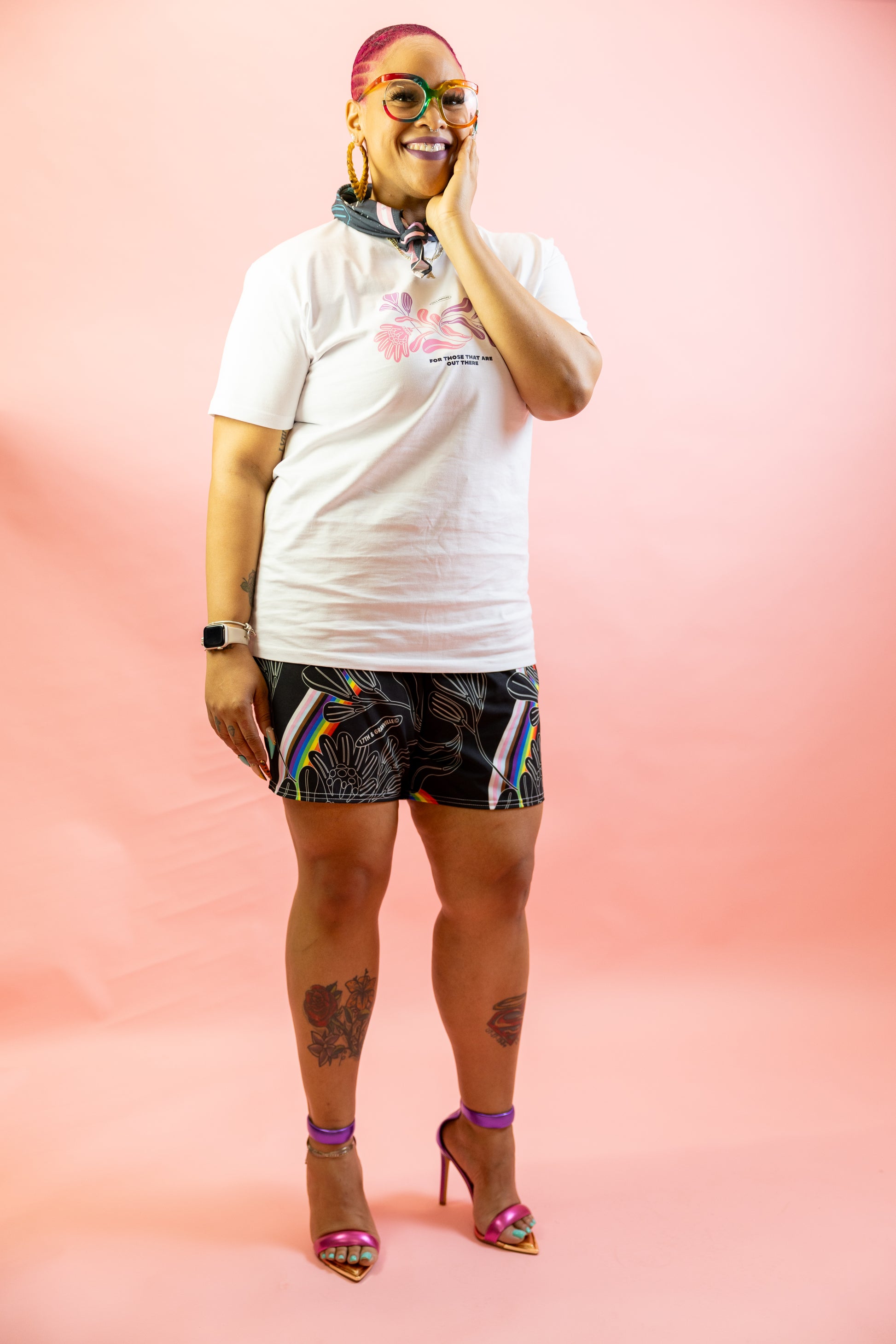 Soft. Strong. Subtle. The Sapphic Pride T-Shirt from our Blooming Pride series is a quiet revolution—an ode to sapphic love in every form it takes. Designed with intention, this piece highlights the tones of the Sapphic Pride rainbow—dusty pinks, deep plums, and soft corals—in a way that blooms gently rather than shouts.